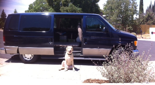 Well two days in and we have already had an adventure…  Everything got off to a good beginning on Monday even though we had a late start.    We stopped a few times in the forests and went for some short walks.   My favorite stop though was in Downieville where I got to wade in the river (no rock digging though).   We finally  made it up to Plumas National Forest where we camped for the night.    As you can see we didn’t set up the tent and I had my first night sleeping in the van.   It was a little warm at first but I got Roger to open the windows and then it was OK.    And I don’t think any sneaky bears came around looking for food.   Got to run for now.   Will update you on Tuesdays big adventures a little later.
